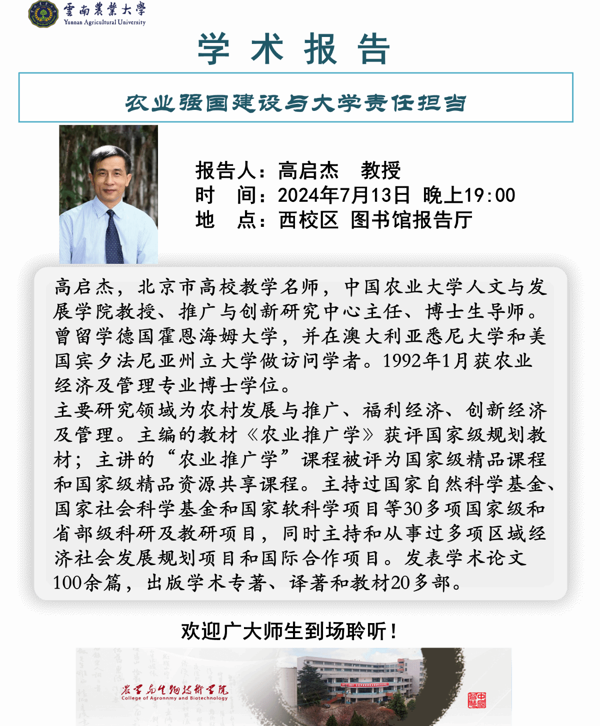 7月13日“红土地”大讲堂:农业强国建设与大学责任担当