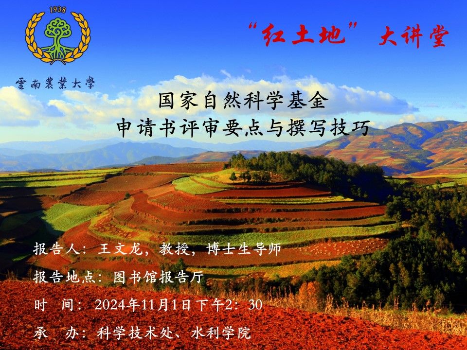 11月1日“红土地”大讲堂:国家自然科学基金申请书评审要点与撰写技巧