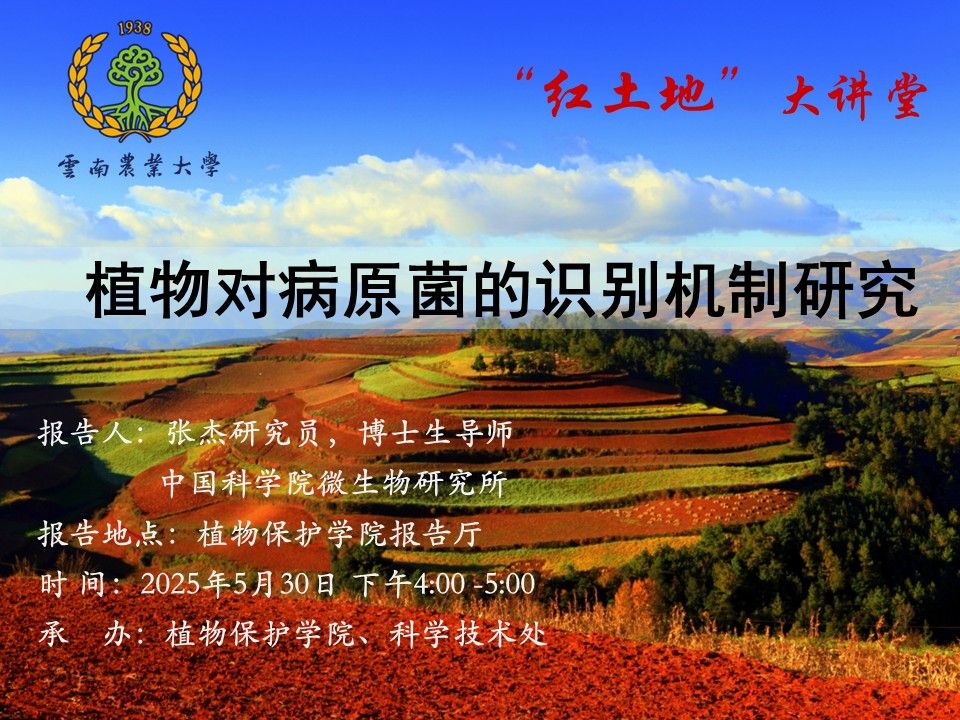 5月30日“红土地”大讲堂:植物对病原菌的识别机制研究