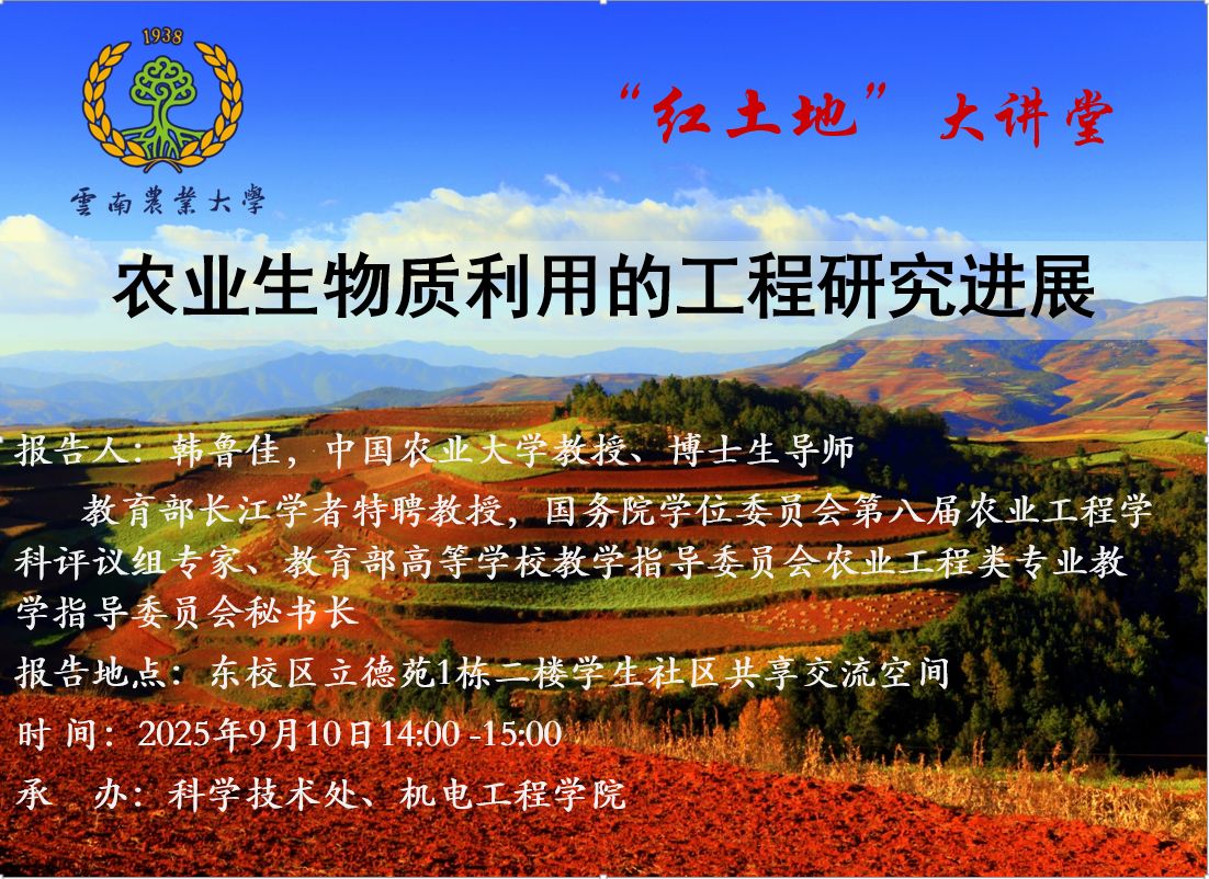9月10日“红土地”大讲堂:农业生物质利用的工程研究进展