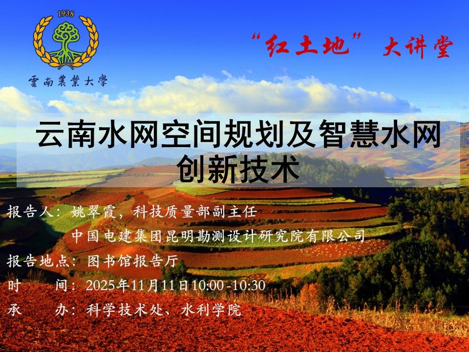 11月11日“红土地”大讲堂:云南水网空间规划及智慧水网创新技术