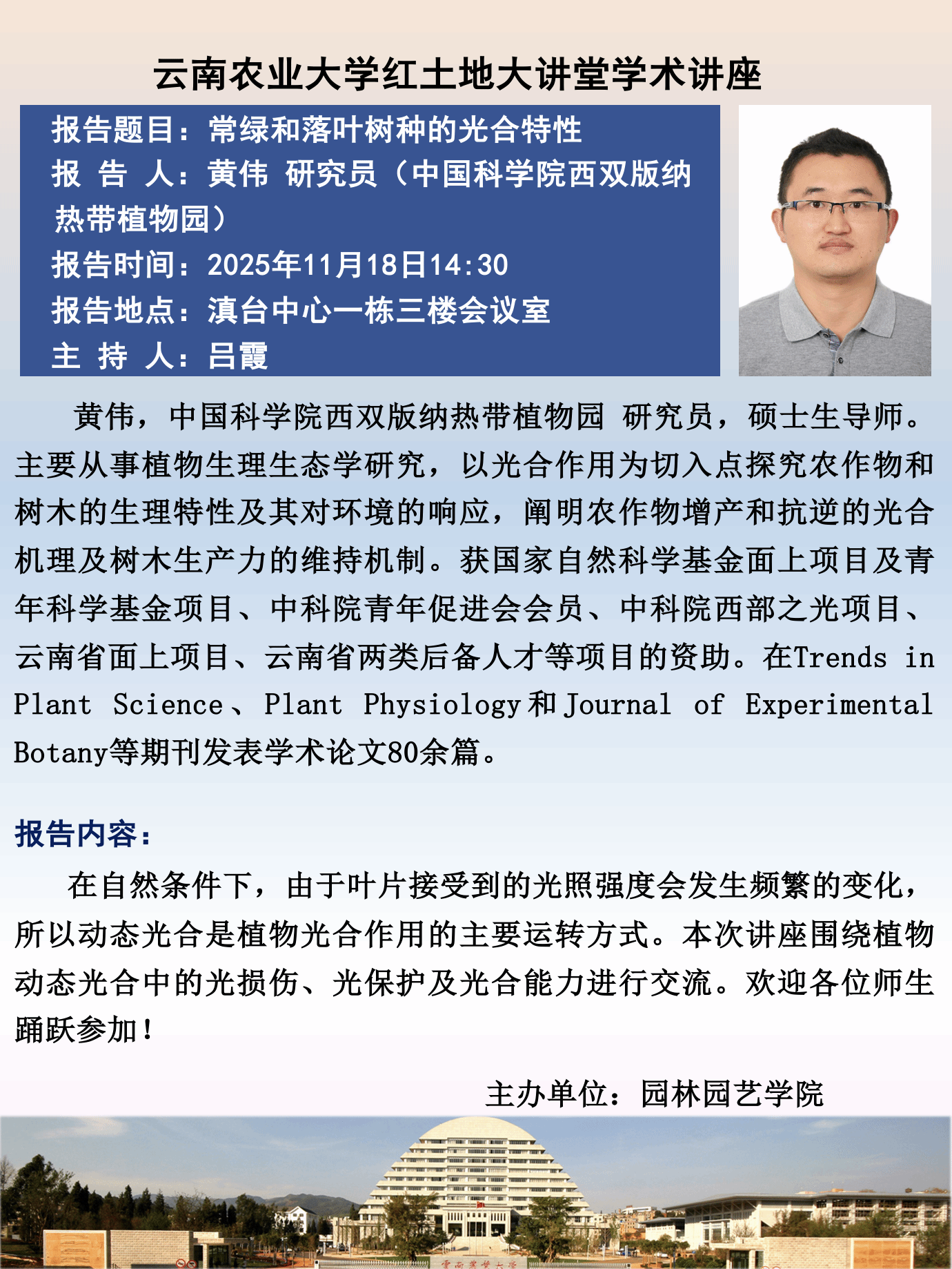 11月18日“红土地”大讲堂:常绿和落叶树种的光合特性