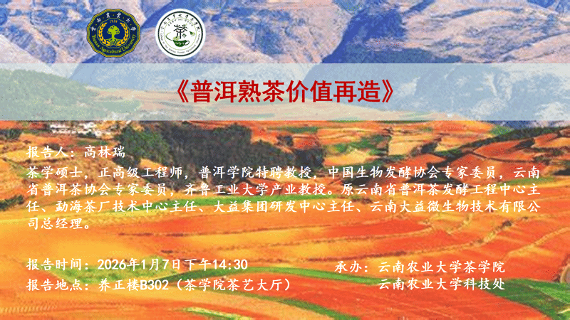 1月7日“红土地”大讲堂:普洱熟茶价值再造