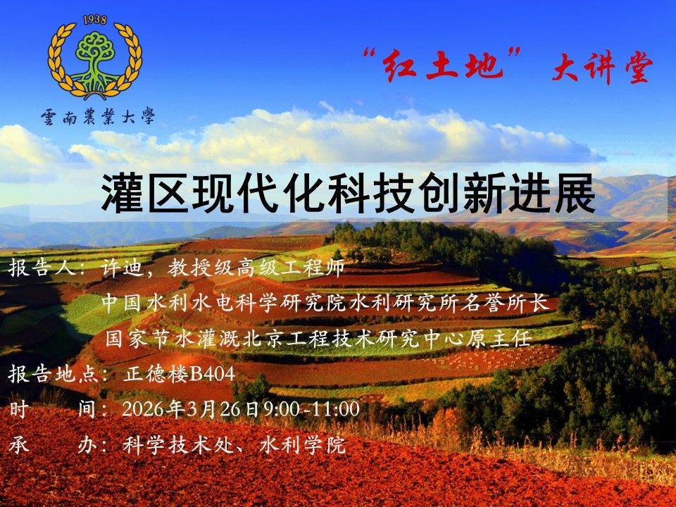 3月26日“红土地”大讲堂:灌区现代化科技创新进展