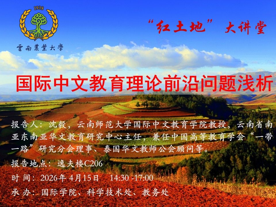 4月15日“红土地”大讲堂:国际中文教育理论前沿问题浅析