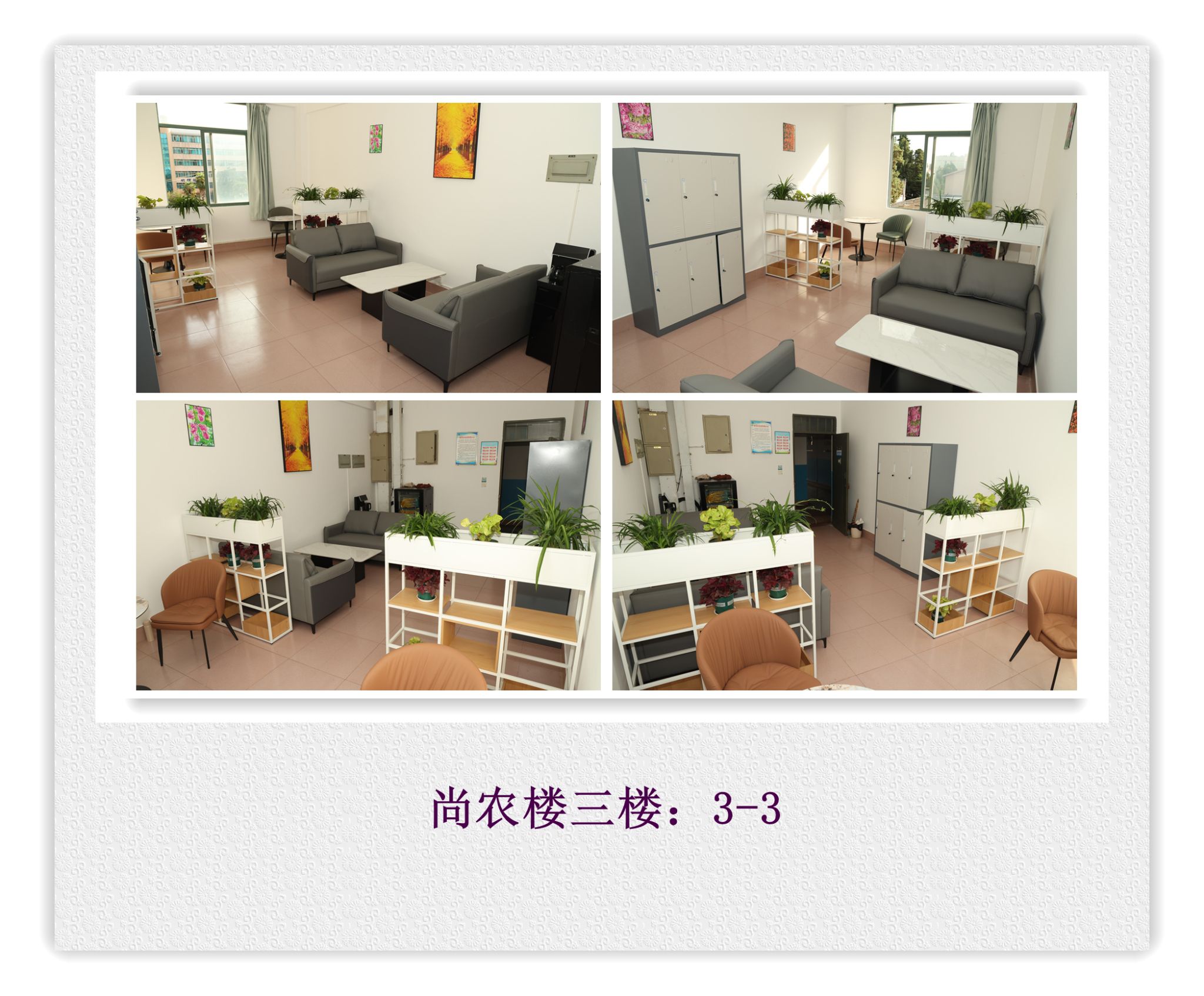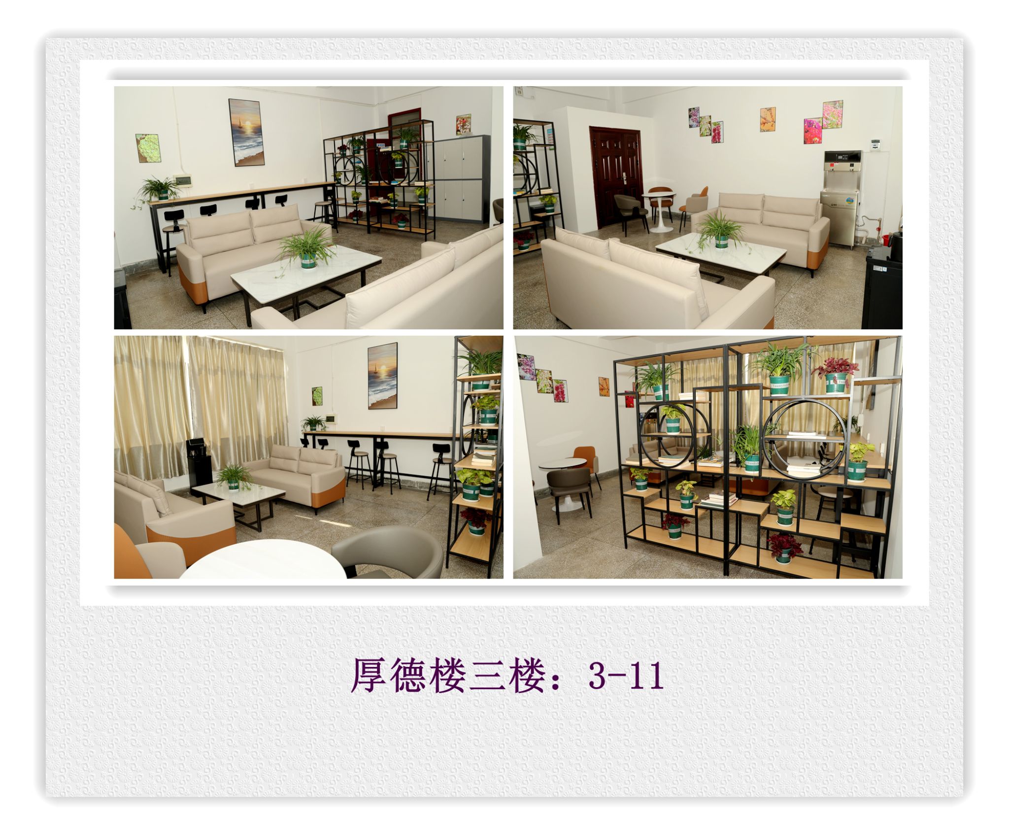 本学期开学前,6间教师休息室的增设和改造升级工作已全部完成,新学期伊始即正常投入使用。休息室配备了茶几、沙发、卡座、休闲椅、吧台吧椅、储物柜、茶吧机和桶装矿泉水等。为便于管理和环境维护,教师休息室的开放时间与教学楼管理同步,仅供教师课间休息、教学答疑等使用,禁止挪作他用或长期存放个人物品,严禁在室内吸烟。确需临时存放物品,请使用带钥匙的储物柜,用毕将钥匙归位。