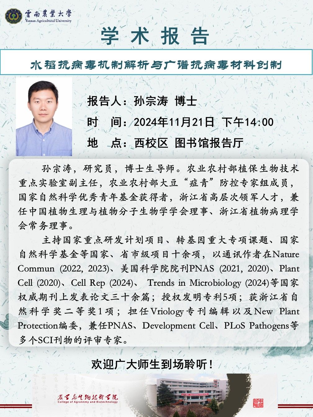 11月21日“红土地”大讲堂:水稻抗病毒机制解析与广谱抗病毒材料创制