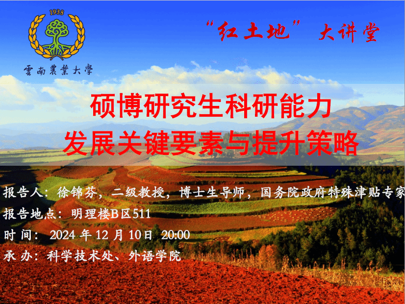 12月10日“红土地”大讲堂:硕博研究生科研能力发展关键要素与提升策略