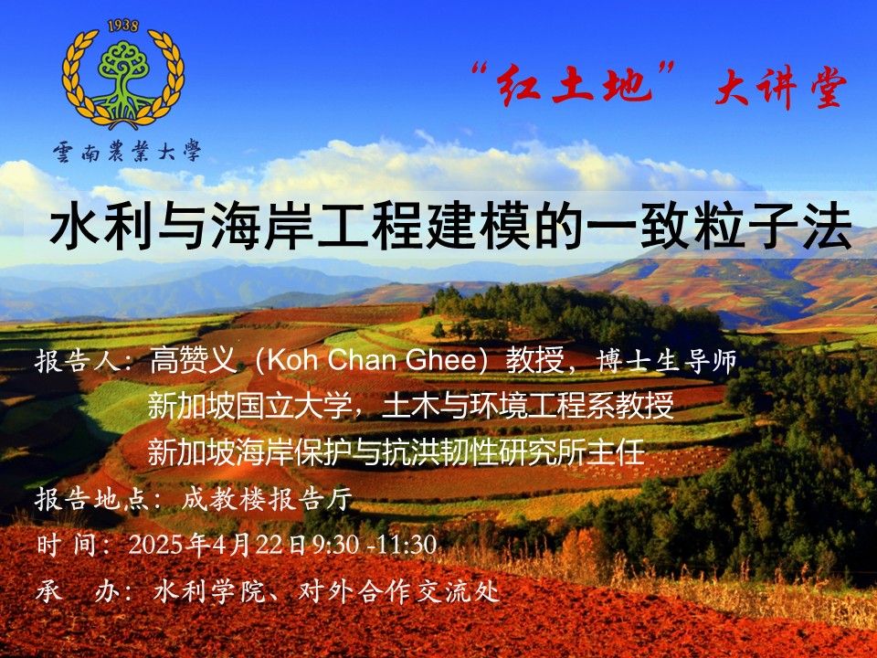 4月22日“红土地”大讲堂:水利与海岸工程建模的一致粒子法