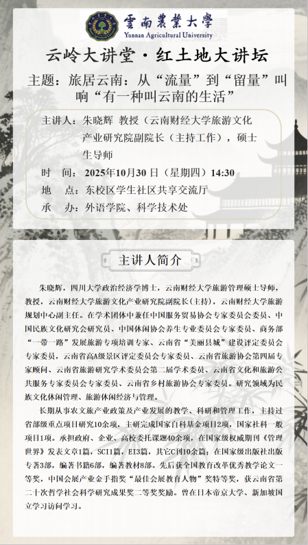 10月30日“云岭”大讲堂 “红土地”大讲坛:旅居云南:从“流量”到“留量”叫响“有一种叫云南的生活”