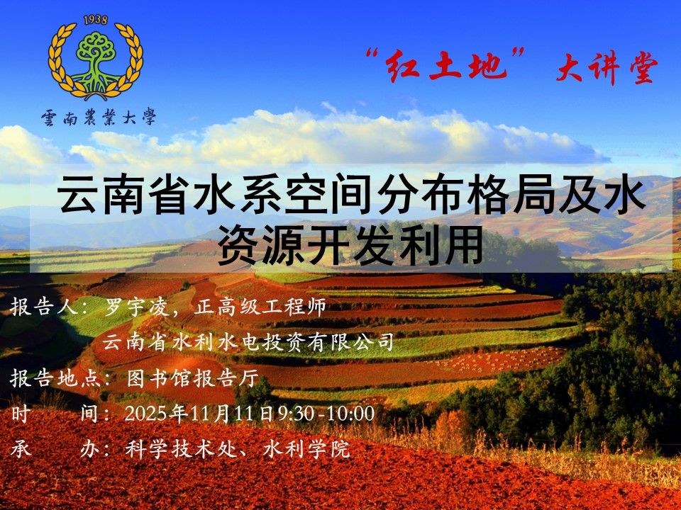 11月11日“红土地”大讲堂:云南省水系空间分布格局及水资源开发利用