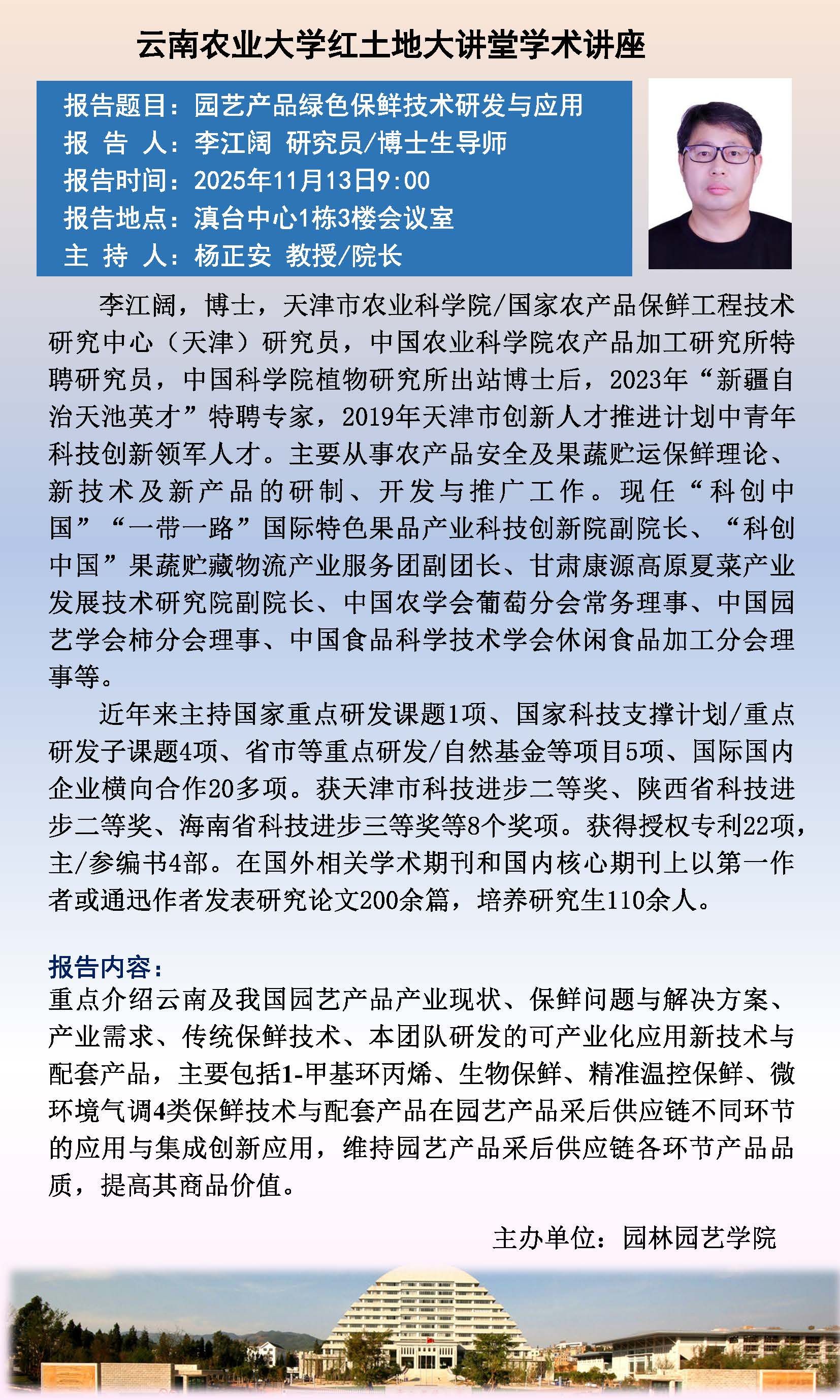 11月13日“红土地”大讲堂:园艺产品绿色保鲜技术研发与应用