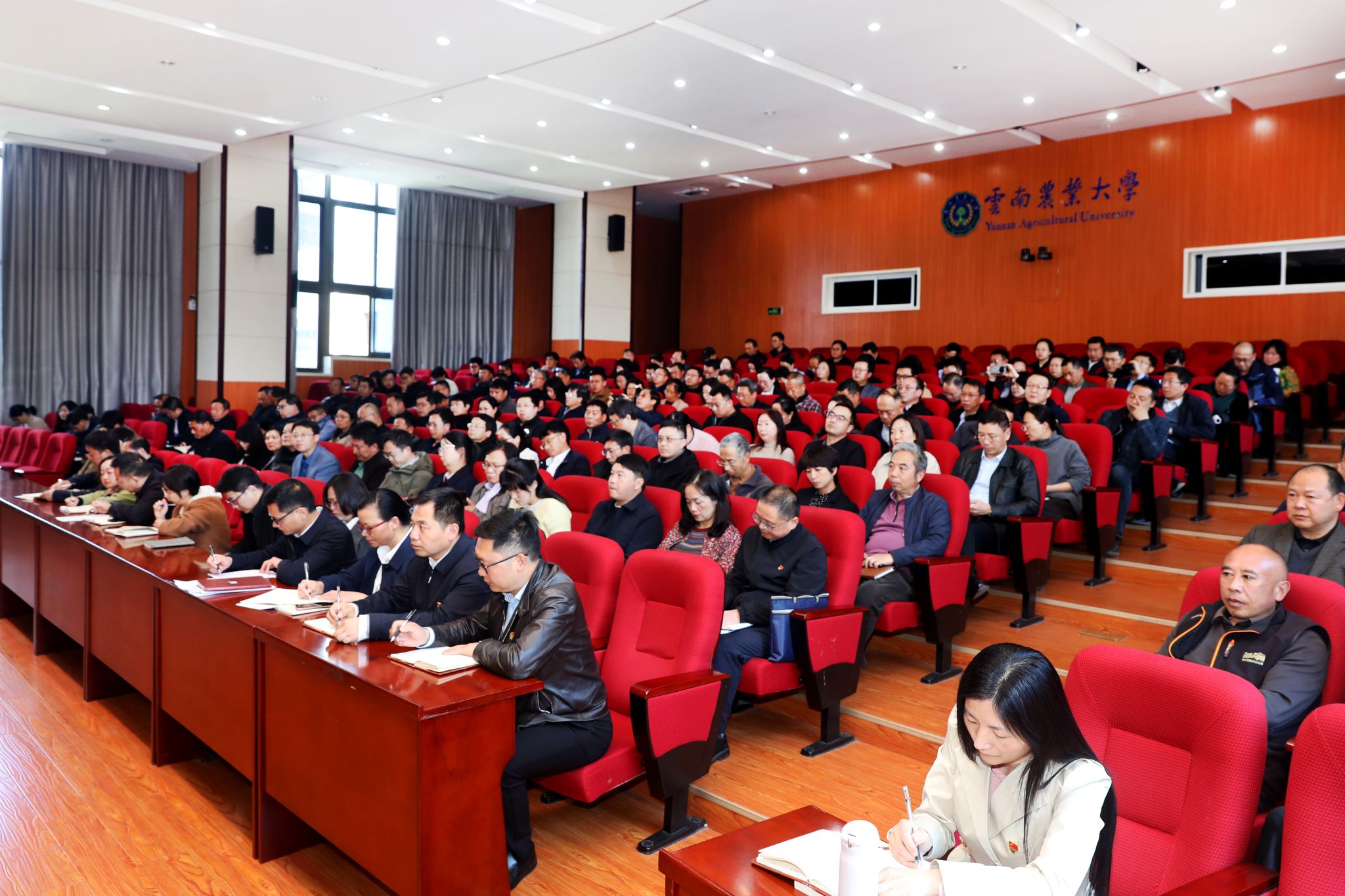 会议紧扣农业高校办学使命、结合云南农大发展实际开展了深入研讨交流。校党委副书记黄鹤平,校党委委员、纪委书记陈文,校党委委员、副校长田洋分别结合分管领域工作实际作重点发言,随机点名职能部门党委、机电工程学院党委、动物医学院党委3个二级党委作交流发言。